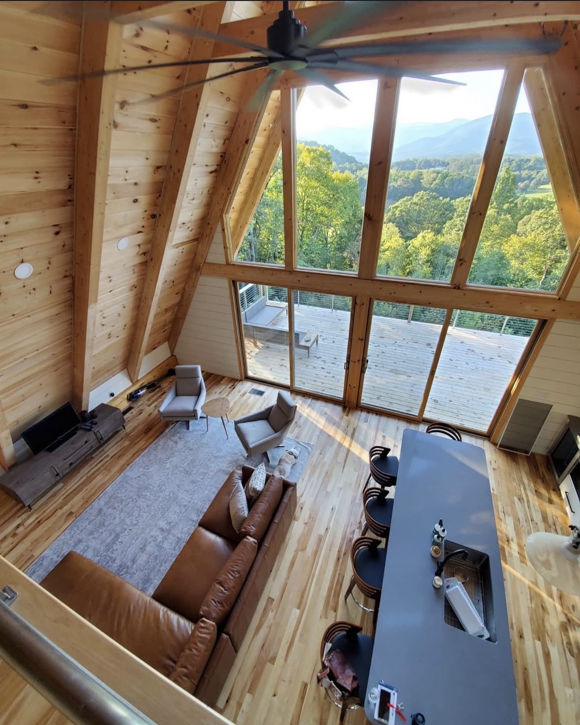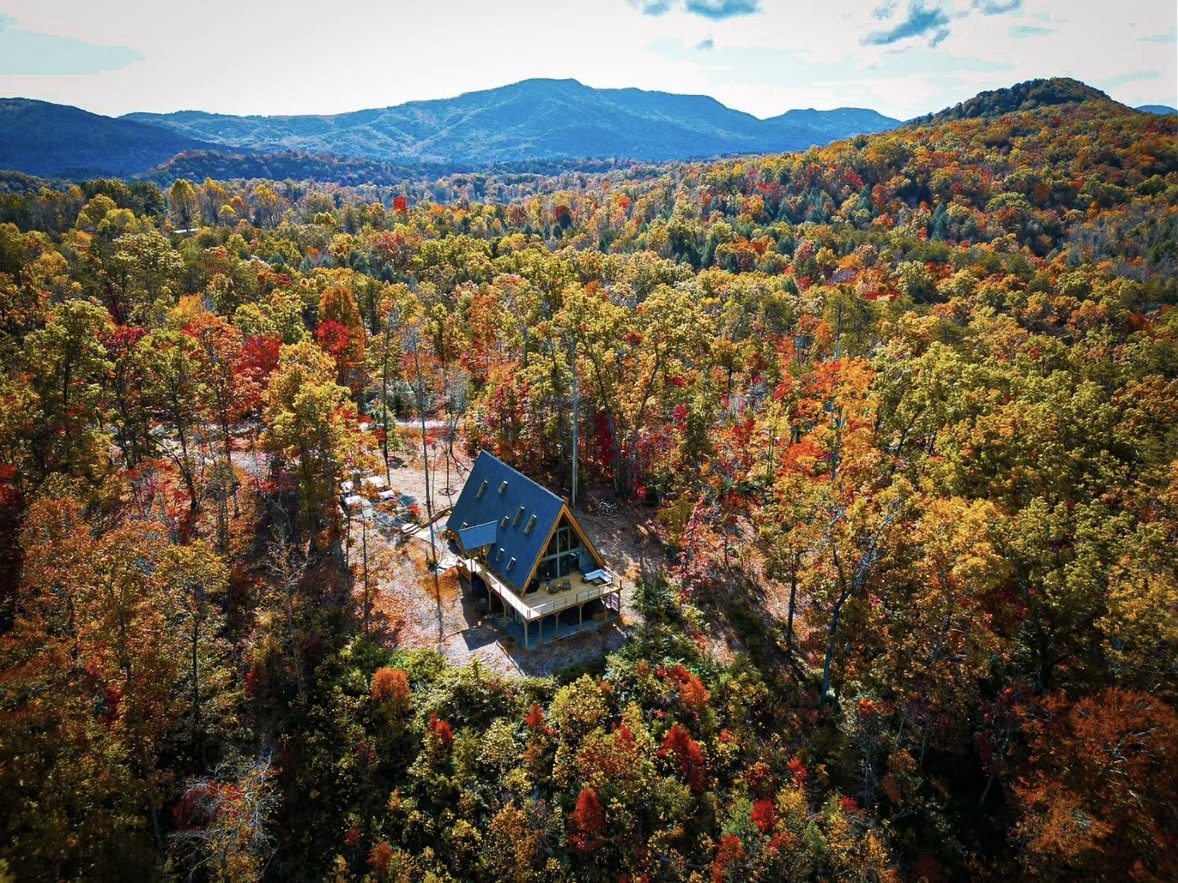 We'll be staying in this beautiful A-frame in the Blue Ridge Mountains, surrounded by the Pisgah National Forest, 30 minutes east of Asheville.